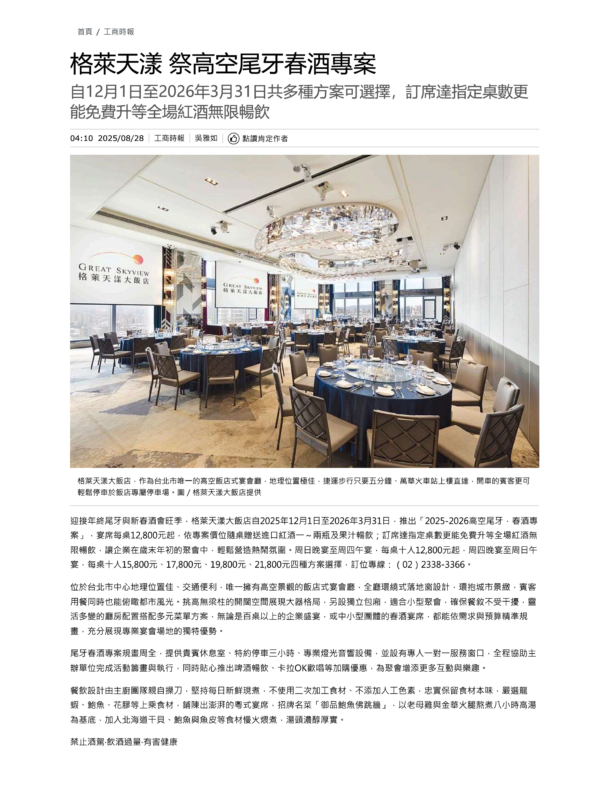 格萊天漾大飯店自 2025年12月1日 至 2026年3月31日