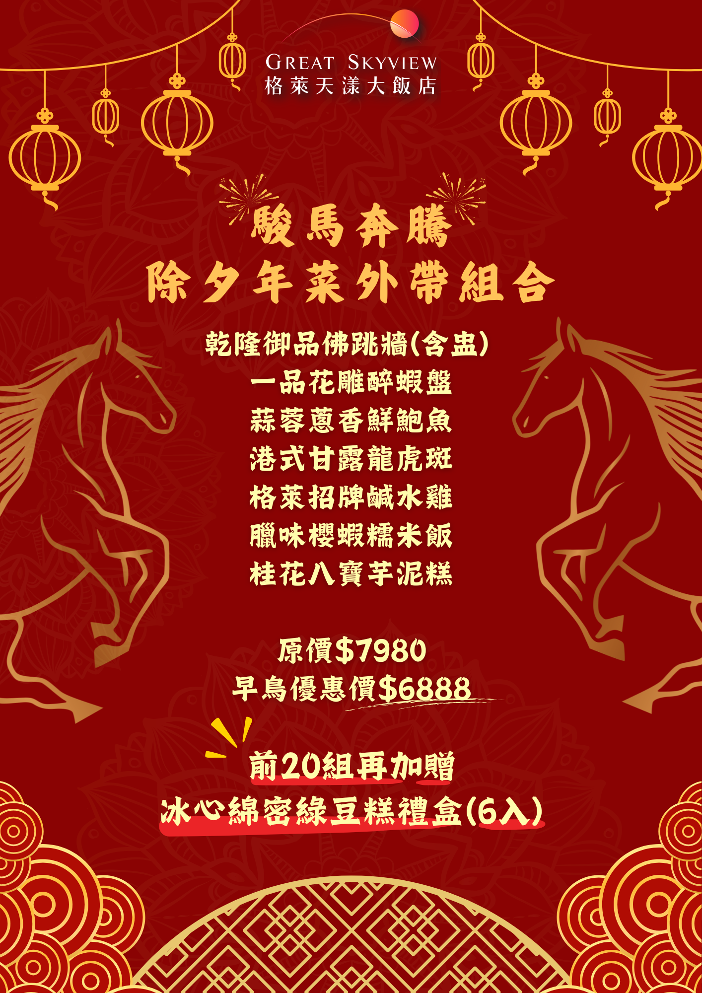 格萊天漾大飯店以「幸福團圓」為主題,推出年菜外帶優惠組合,嚴選優質食材、結合主廚精湛手藝,精心呈現適合閤家共享的年節美味!