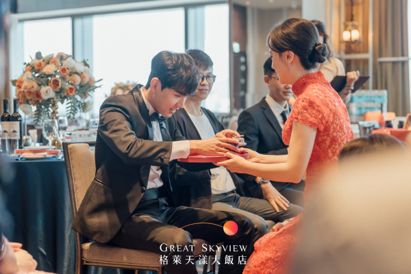 並贈予準新郎頭尾禮。禮成後,由女方燃炮,親友相互道賀,儀式圓滿完成。