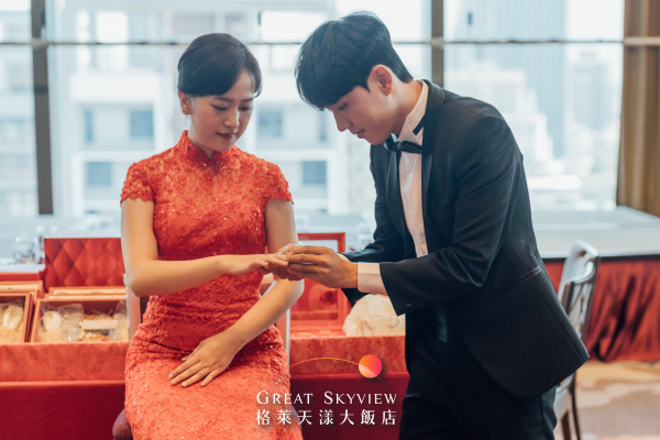 新人先交換金戒指(或由紅線將金戒及婚戒綁成同心戒),再由準婆婆為準新娘戴上金項鍊、手鍊(手環)